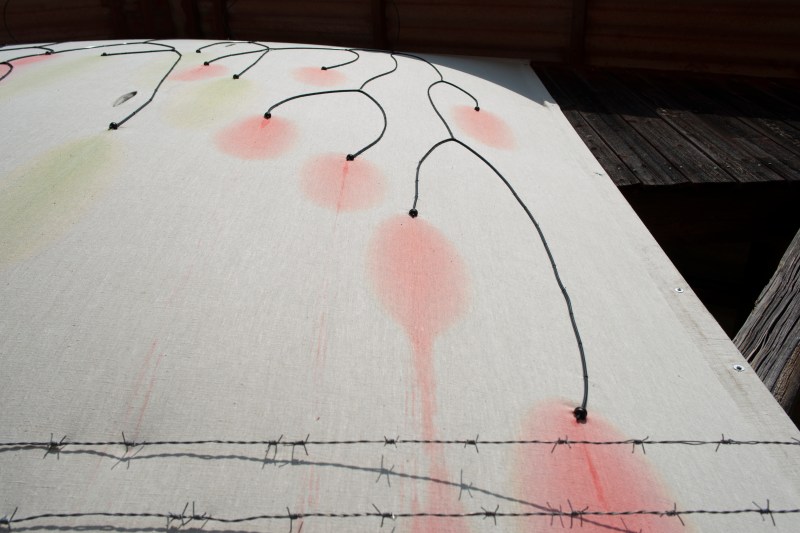 In Retention, rain water is collected and diverted into a system, activating the painting of the piece.